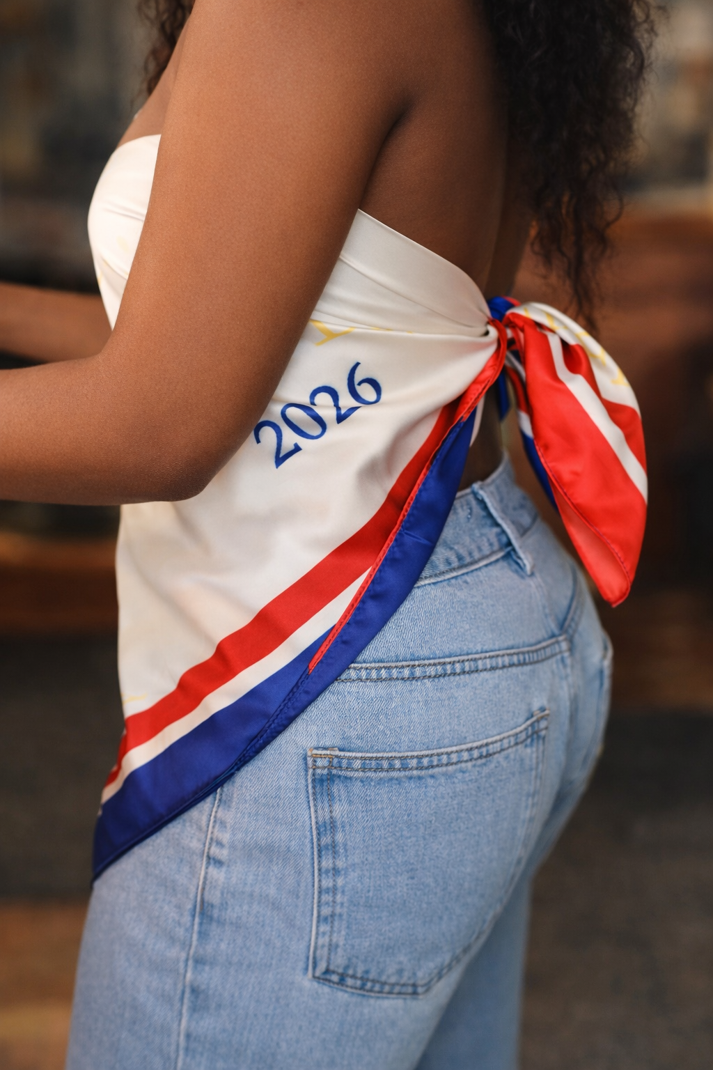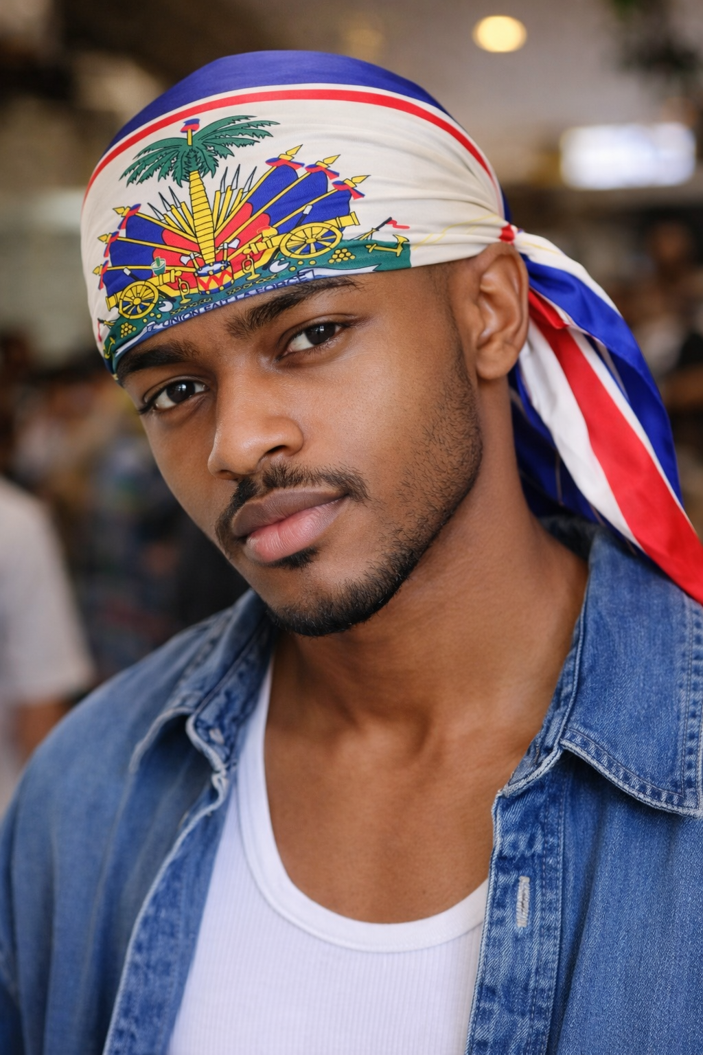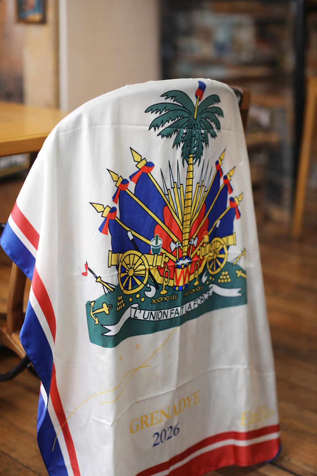 Livraison en mai 2026 Prévente pour sécuriser ta commande Célébrez Haïti à la Coupe du Monde avec élégance. Soie luxueuse, couleurs éclatantes.